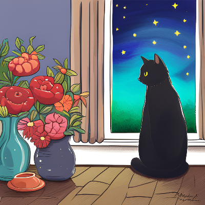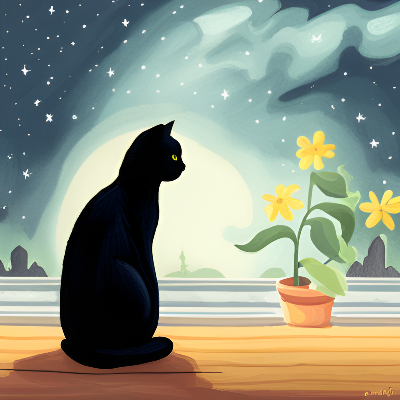 꽃, 고양이, 별