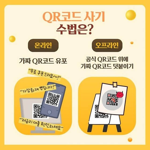 - 오프라인: 공식 QR코드 위에 가짜 QR코드 덧입히기